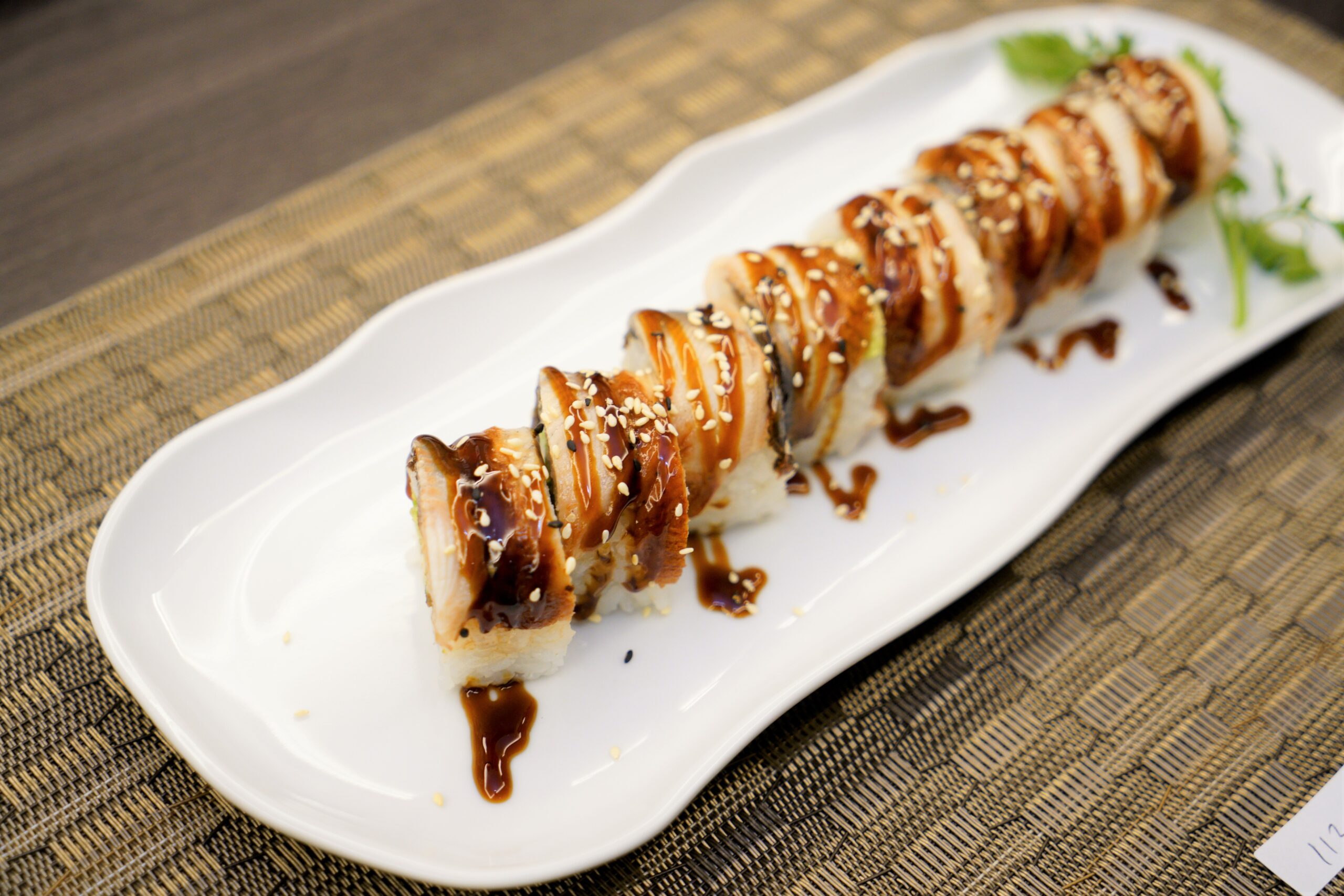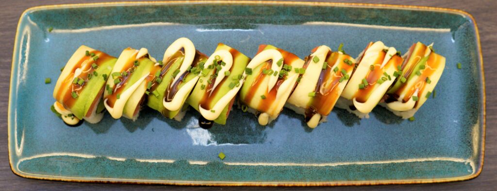 144-Bandeja 4: 4 california,4 salmón con queso, 4 roll de atún,4 de dragón 22,95€