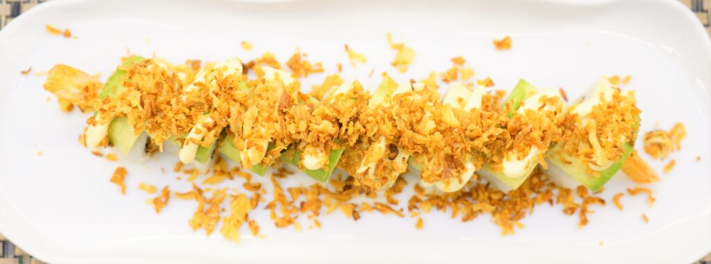 104-Uramaki de atún crunch/Tuna crunch 13,95€