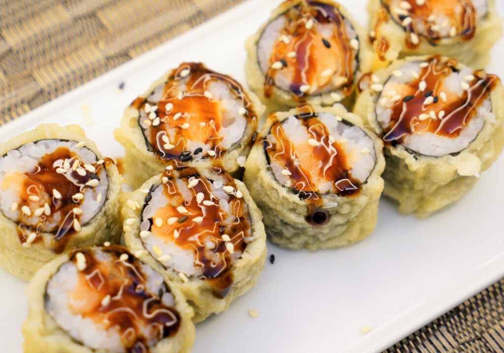 126-Tempura maki con tartar de salmón(8UD)/Tempura maki with salmon tartar(8UNITS) 13,95€